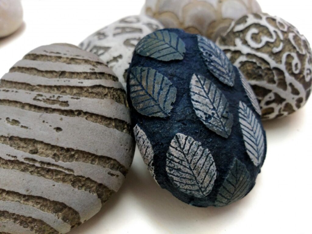 Còdols que han arribat a la platja després d’un llarg viatge, esdevenen el suport per a aquestes petites escultures gravades i, de vegades, tenyides de blau. La força de les onades n’ha arrodonit les formes. Ara que reposen abandonats a la deriva, els ofereixo el seu darrer viatge.